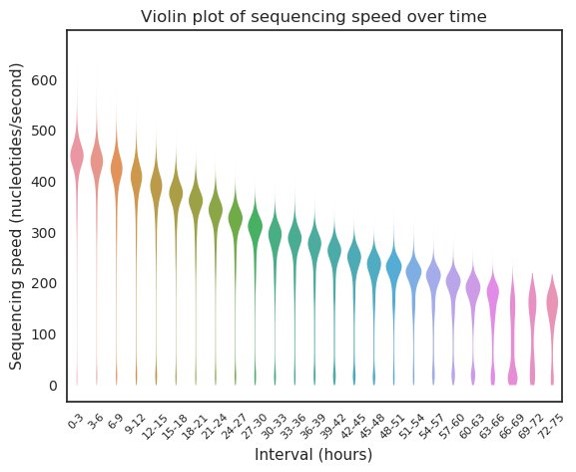 My NanoPlot tool includes plots showing the decline in base call quality and sequencing speed over time, see below.